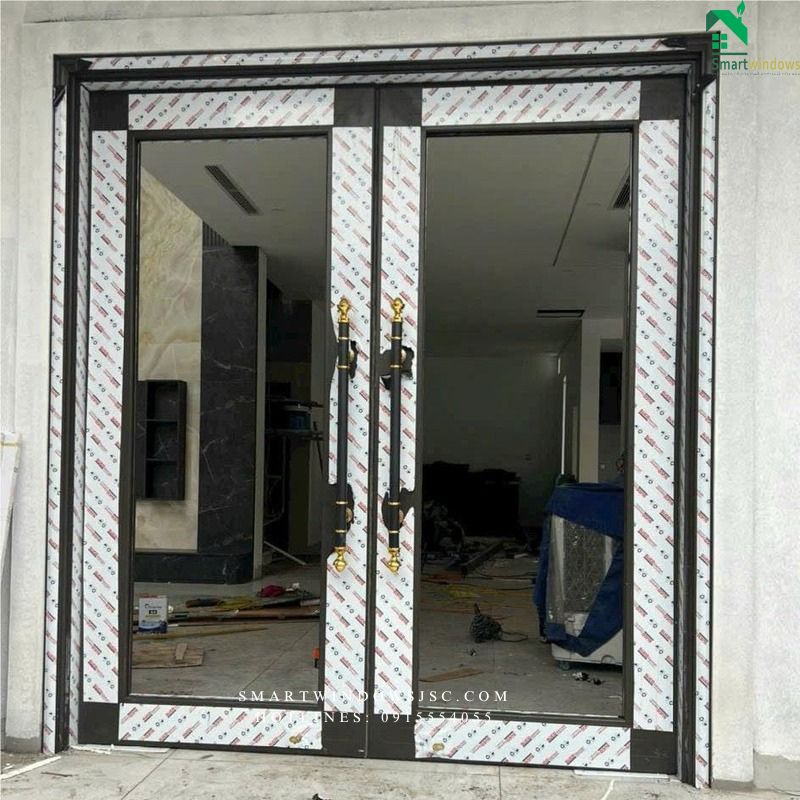 Cửa 2 cánh sang trọng – lý tưởng cho cửa chính, front văn phòng, không gian mặt phố đẹp.