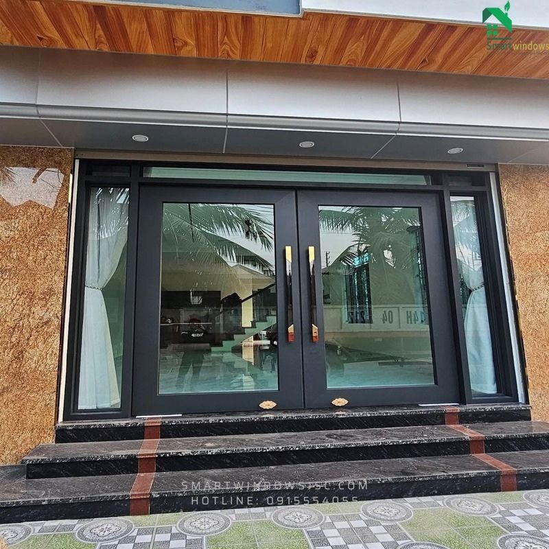 Giải pháp: Lắp đặt cửa mở quay 2 cánh bằng nhôm kính cường lực, màu đen sang trọng.