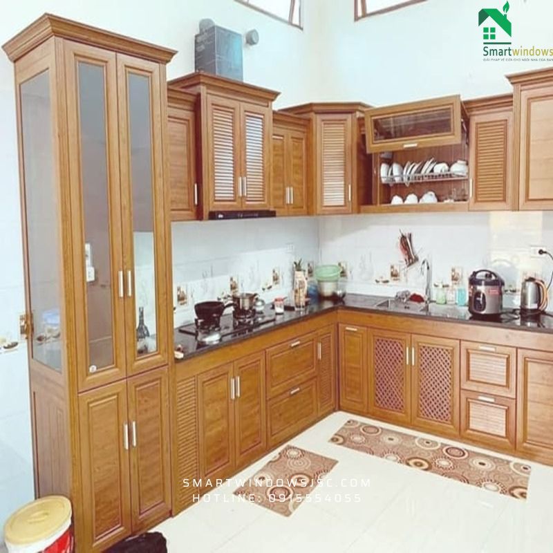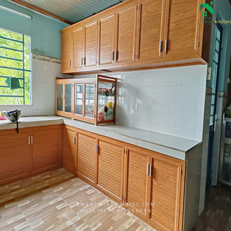 Đây là mẫu tủ bếp nhôm Omega cho căn hộ chung cư được lựa chọn nhiều nhất.